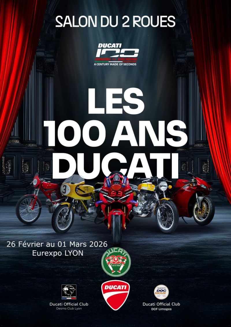Cette année, le DCF vous donne rendez-vous au Salon du 2 Roues – Lyon Eurexpo pour une exposition exceptionnelle dédiée aux 100 ans de Ducati